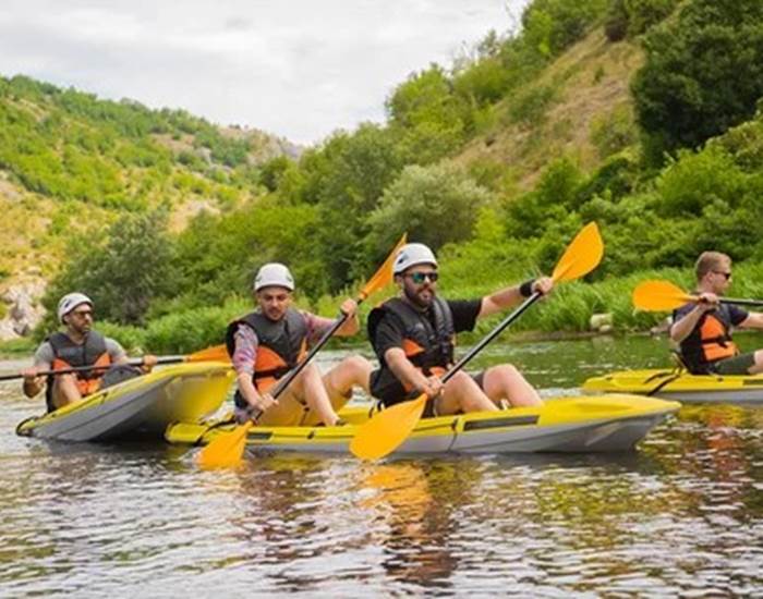 Pour les kayaks, c’est un peu plus sportif, plus maniable et vous êtes assis avec les jambes allongées.